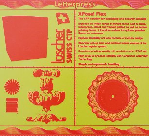 Today’s letterpress plates are made of polymers and are used for a whole host of sophisticated applications, including direct printing and embossing on labels in narrow-web presses. Letterpress plates meet the toughest requirements when it comes to reproduction of details and ink transfer, including special-effect pigments.
